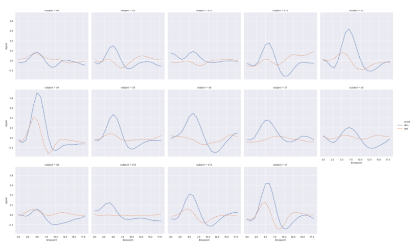 用到relplot的属性是col和col_wrap自动分行,同理也可以用row属性设置列.