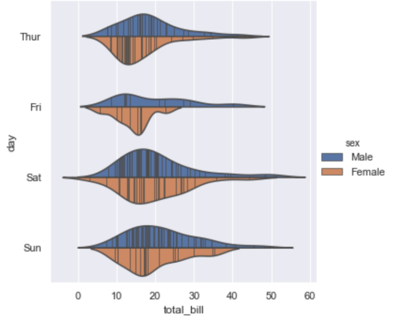 另外看一下如何将两个不同类型的图表合为一个,例如下面我们将violin和swarm类型的图表在一张图里展示: