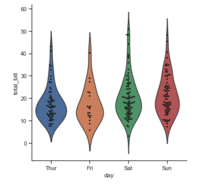 sns.swarmplot(x="day", y="total_bill", color="k", size=3, data=tips, ax=g.ax);数据估计