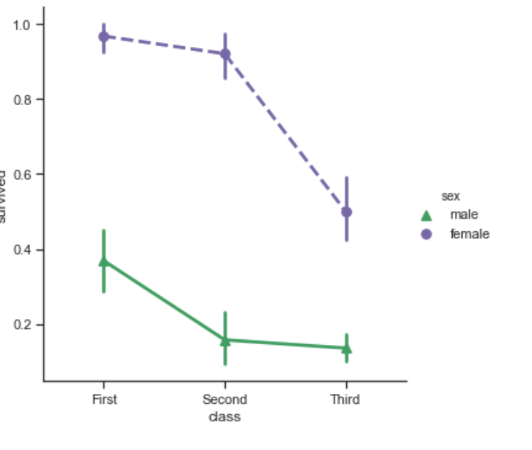 data=titanic);点状图可以设置的属性也有很多,比如线的样式,点的样式等等
